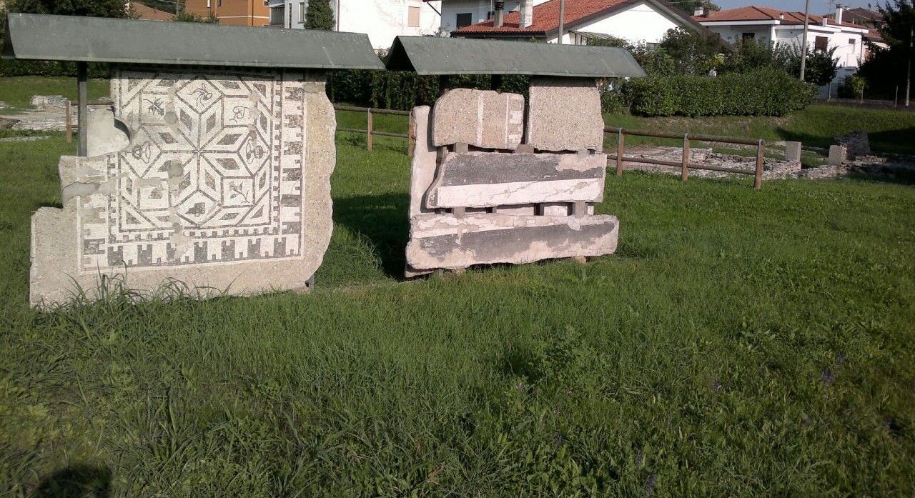 Nella parte nord-occidentale di Este, poco distante dalla Chiesa della Salute, si trova una suggestiva area archeologica recintata, che conserva resti di edifici e di una strada di epoca romana. Questo sito archeologico si sviluppa tra Via Rubin de Cervin (chiusa a ovest dall’imponente arco dell’ormai scomparsa Villa Bragadin), le sue laterali Via Albrizzi e Via Pietrogrande, e la parallela Via Tiro a Segno. I resti romani vennero portati alla luce grazie a scavi sistematici condotti tra il 1967 e il 1974. Situata in un quartiere residenziale in espansione, l’area venne preservata da nuove costruzioni, mantenuta in gran parte a prato, recintata con una rete metallica e dotata di un accesso attraverso un cancelletto su Via Tiro a Segno. Questa zona si trovava probabilmente nelle vicinanze del Foro di Ateste (nome antico di Este), che le ricerche più recenti hanno localizzato tra la Chiesa della Salute, l’area archeologica di Via Olmo e l’inizio di Via Rubin de Cervin. Il quartiere era organizzato in isolati, delimitati da un reticolo di strade ortogonali tra loro e alle due arterie principali che si incrociavano all’altezza nel Foro. Nell’area archeologica, visibile da Via Albrizzi, è ancora conservato un tratto di una delle strade secondarie nord-est/sud-ovest con la sua pavimentazione in pietra. Su questa strada si affacciavano tre abitazioni (domus) le cui fondazioni sono tuttora visibili. Due di esse, separate dalla stradina lastricata, si possono osservare dal tratto non edificato di Via Albrizzi, mentre la terza è visibile da Via Pietrogrande. L’area, però, non aveva solo una funzione residenziale. Lo dimostra il ritrovamento di oltre 300 anfore risalenti al primo secolo d.C., insieme a resti di condutture idriche utilizzate probabilmente per rifornire laboratori di vasai e di altri artigiani. Anche la struttura degli edifici suggerisce un’attività artigianale e commerciale: le stanze più piccole, adiacenti alla strada e con ingressi indipendenti, potevano essere tabernae (botteghe), mentre gli ambienti più ampi, in parte decorati con pavimenti a mosaico e disposti intorno a cortili interni, fungevano da abitazioni private. Su Via Pietrogrande è presente un pannello informativo che descrive l’area archeologica. Da questo lato, all’interno dell’area archeologica sono visibili due grandi frammenti di pavimenti a mosaico, ora esposti verticalmente su una struttura protettiva, provenienti da alcuni vani delle tre domus qui rinvenute. Nei pressi del cancello d’ingresso sono stati collocati numerosi elementi architettonici, condutture idriche e canalette rinvenuti nelle adiacenze dell’area forense posta a oriente di questo sito, che offrono una testimonianza tangibile della ricca storia dell’antica Ateste.