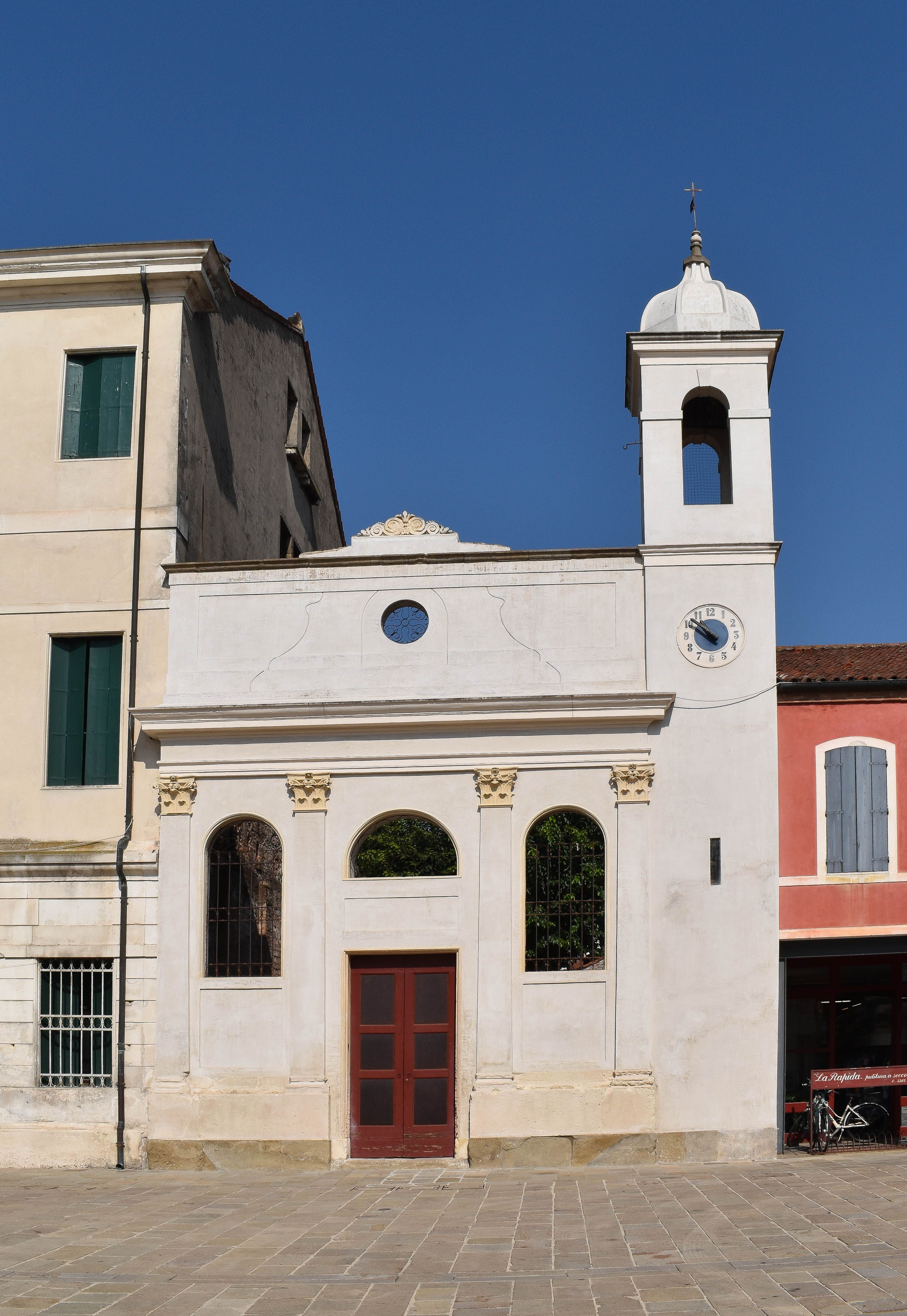 Conosciuta anche come “la Madonnetta”, la Chiesa di Santa Maria Annunziata risale al Cinquecento. La chiesa, meglio nota come “Chiesa della Madonnetta”, venne edificata nel 1585 per iniziativa della Confraternita della Compagnia dei Battuti, che fin dal 1260 occupava il sito. In origine, la Confraternita gestiva un ospedale per conto della Magnifica Comunità di Este, dotato anche di una “ruota per gli esposti”. Nel 1845 l’architetto autodidatta estense Giuseppe Riccoboni (1820-1894) intervenne sulla facciata, ridisegnandola completamente e conferendole l’aspetto che oggi possiamo ancora ammirare. Inizialmente utilizzata come centro parrocchiale e collegata al vicino Cine-Teatro Famiglia, la chiesa venne sconsacrata durante la Seconda Guerra Mondiale e destinata a magazzino e deposito. Questo periodo di abbandono comportò il crollo della copertura e un lungo degrado, fino al 1967, quando all'interno - ormai vuoto - fu realizzata una struttura provvisoria in legno coperta da lastre di cemento-amianto. A metà degli anni ’60, l’ex chiesetta fu ceduta al Comune di Este. Il vuoto dell’interno venne riempito con la suddetta struttura lignea, demolita poi durante i più recenti lavori di restauro. Nel 2009 fu avviato un progetto di recupero generale, articolato in due fasi. La prima, realizzata tra il 2011 e il 2013, portò al consolidamento e al restauro conservativo della facciata e del campanile, uniche parti ottocentesche sopravvissute. Oggi l’edificio ospita un moderno spazio culturale, restituito alla comunità.